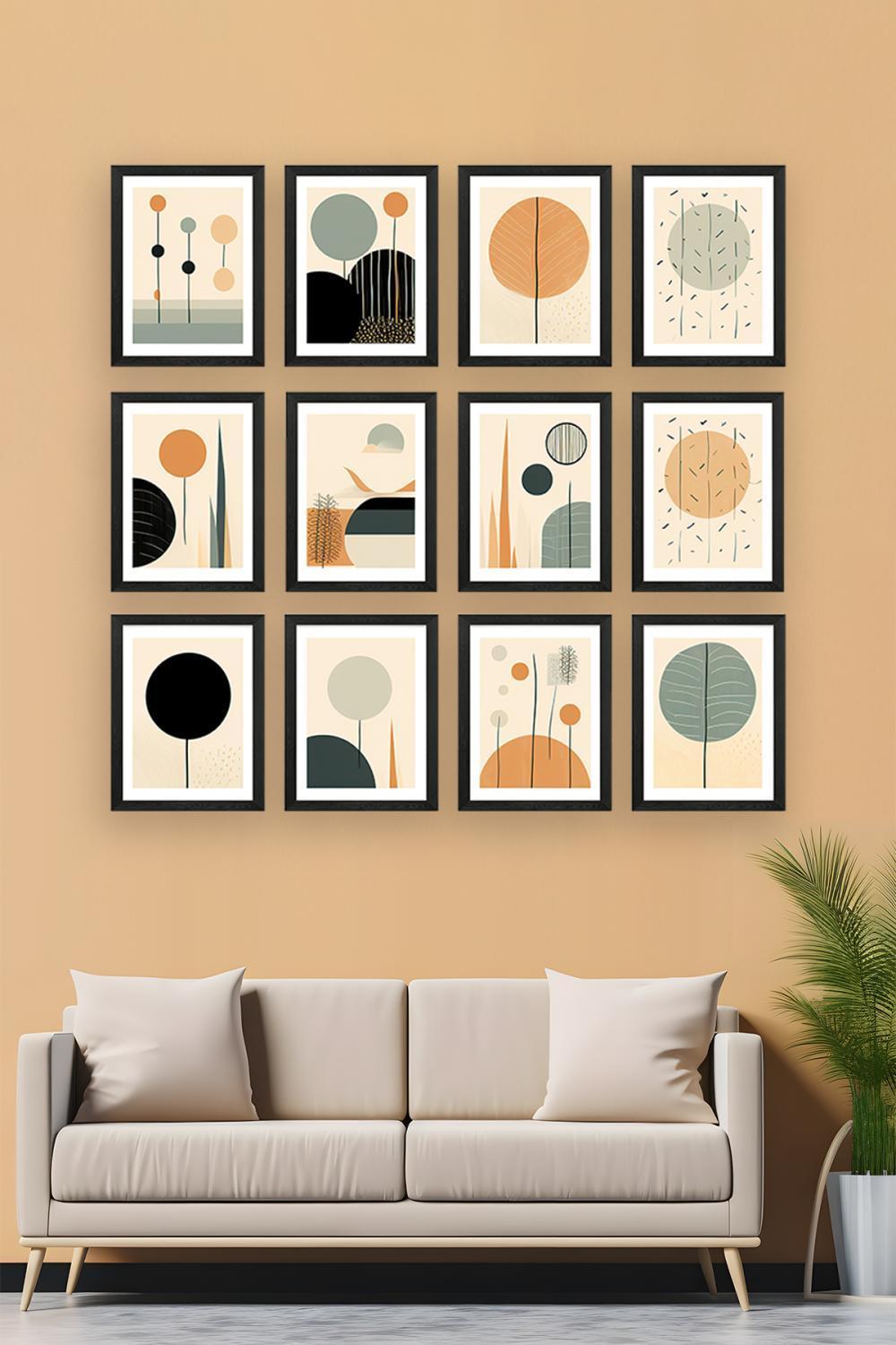 12 Parça Siyah Çerçeve Görünümlü Mdf Tablo Seti - 12ARTAVESSA25