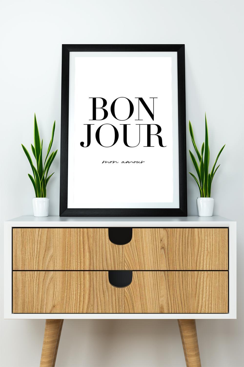Tek Parça Çerçeve Görünümlü Yazılı Mdf Tablo "Bonjour" - 1ARTAVESSAYAZ48