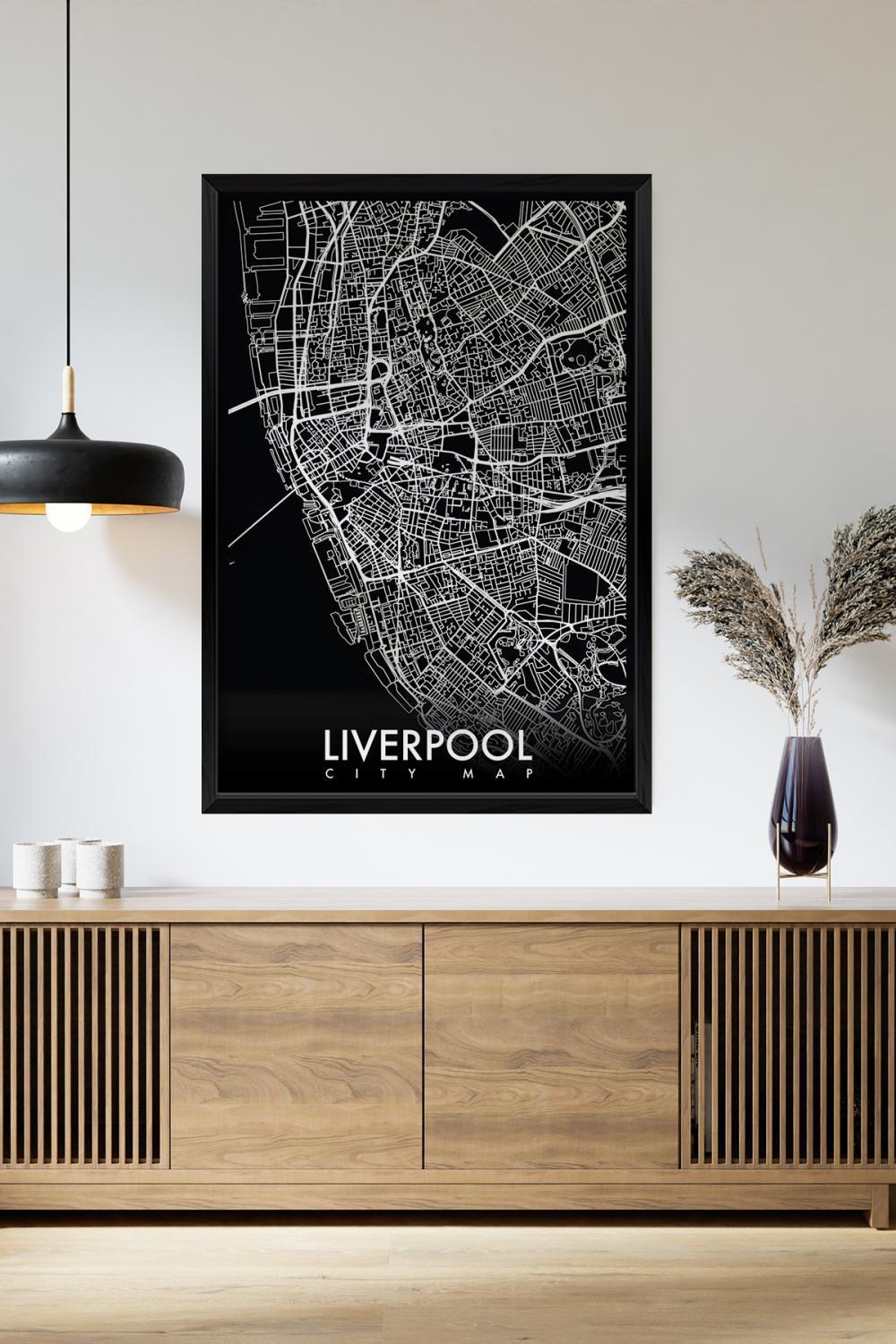 Tek Parça Siyah Çerçeve Görünümlü "Liverpool Siyah" Harita Mdf Tablo - ARTAVESSACTYMAP12