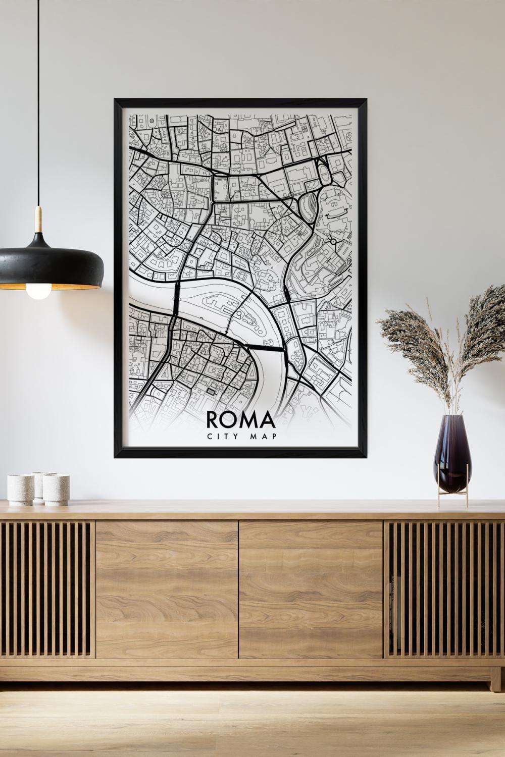 Tek Parça Siyah Çerçeve Görünümlü "Roma Beyaz" Harita Mdf Tablo - ARTAVESSACTYMAP19