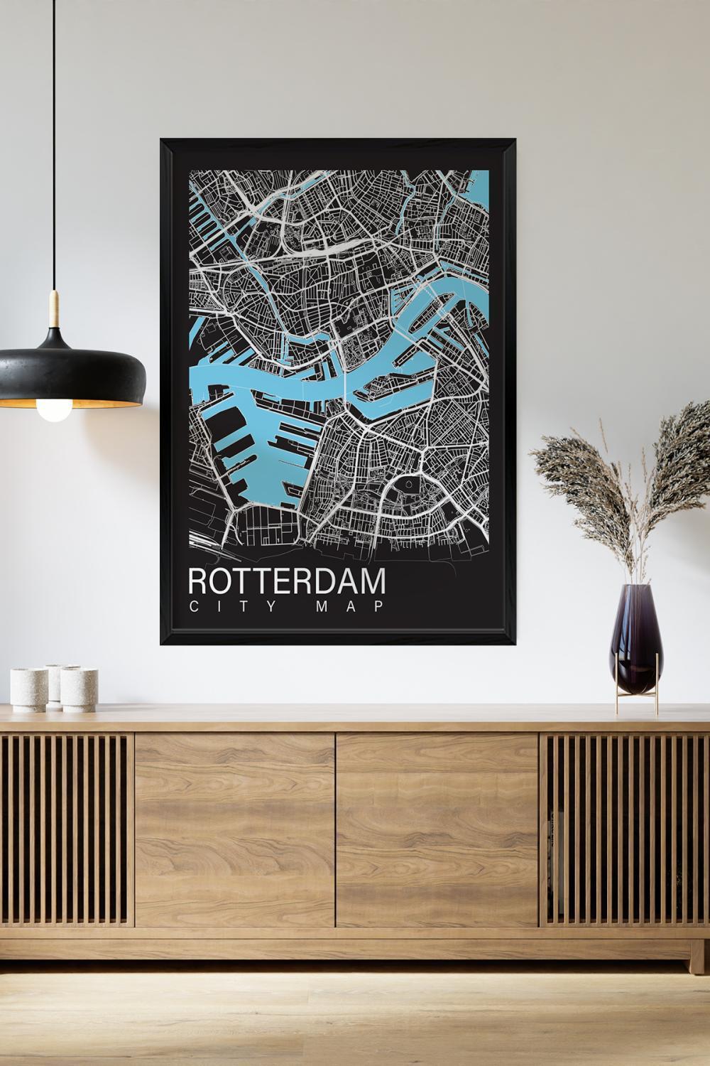Tek Parça Siyah Çerçeve Görünümlü "Rotterdam Siyah" Harita Mdf Tablo - ARTAVESSACTYMAP22