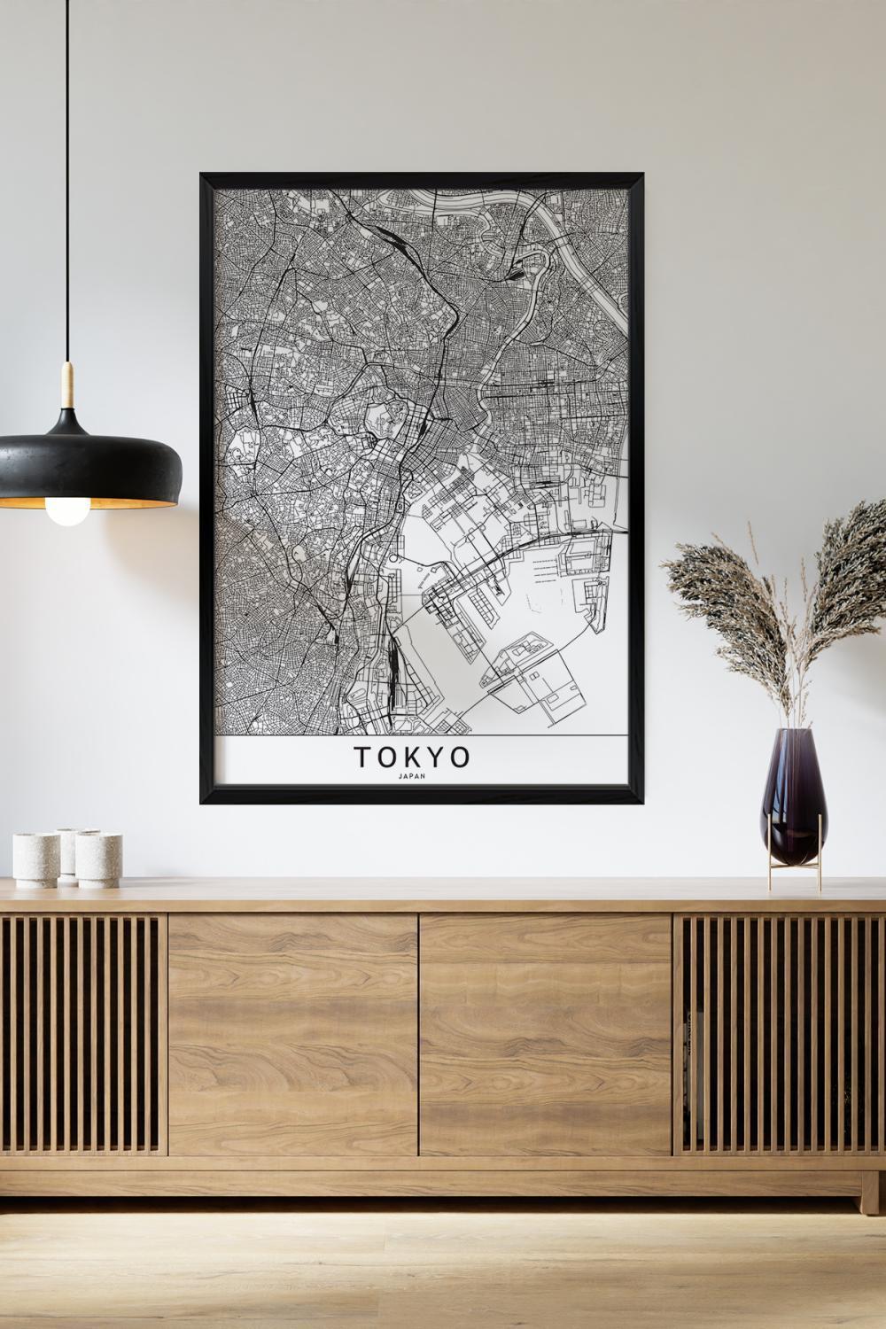 Tek Parça Siyah Çerçeve Görünümlü "Tokyo Beyaz" Harita Mdf Tablo - ARTAVESSACTYMAP31